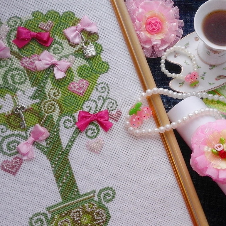 Моё настоящее увлечение вышивкой началось с этого дерева счастья от Риолис. Вышивать я начала еще лет в 13, а самые первые стежки вообще были сделаны в 1 классе на уроке труда. Но после работы над этим дизайном я окончательно и бесповоротно стала вышивальным маньяком)))) И произошло это всего 2 года назад, когда Алена проводила совместник по Риолису)))
