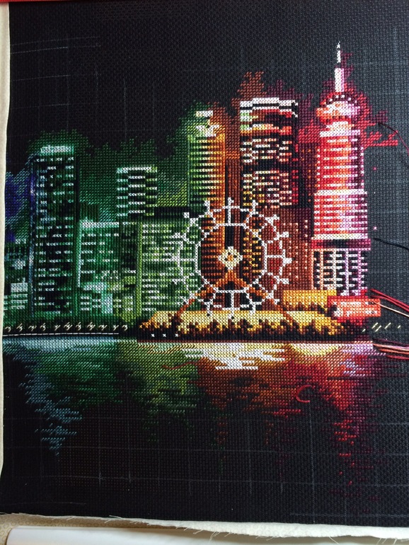 Ох и скорость!!! Ты молодец!!! Всегда любуюсь!!! Диана, подскажи, пожалуйста, каким размером взять канву к этому набору? Вчера приехал и мой "ночной город", но читала у тебя, что канва тут только-только, не хочется город прятать под раму((