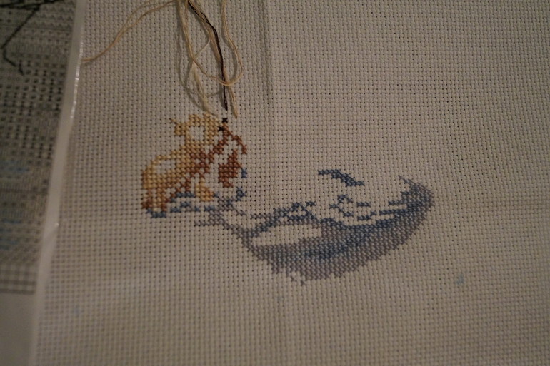 Спасибо! Пока в основном крест вышиваю, идет хорошо, а вот скоро начнется мешанина на деревьях из полукреста, вот где буду ковырять очень-очень долго