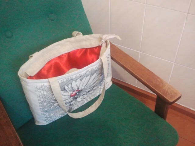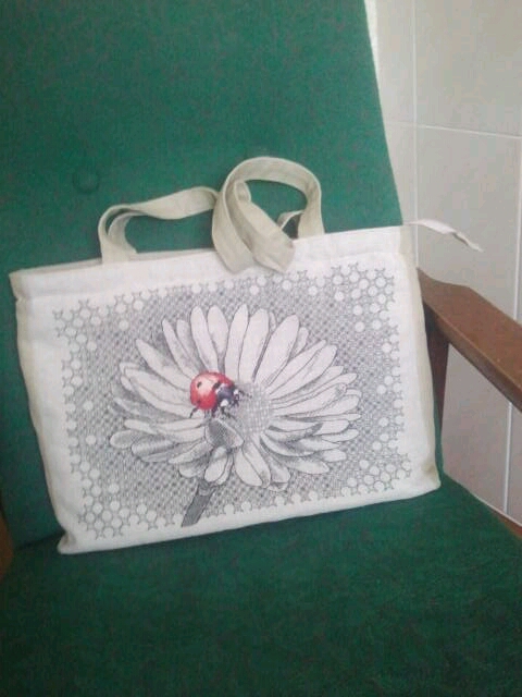 Фасадная часть сумки вышла 31*40 см. Я шила на равномерке, что отвечает 14 аиде.