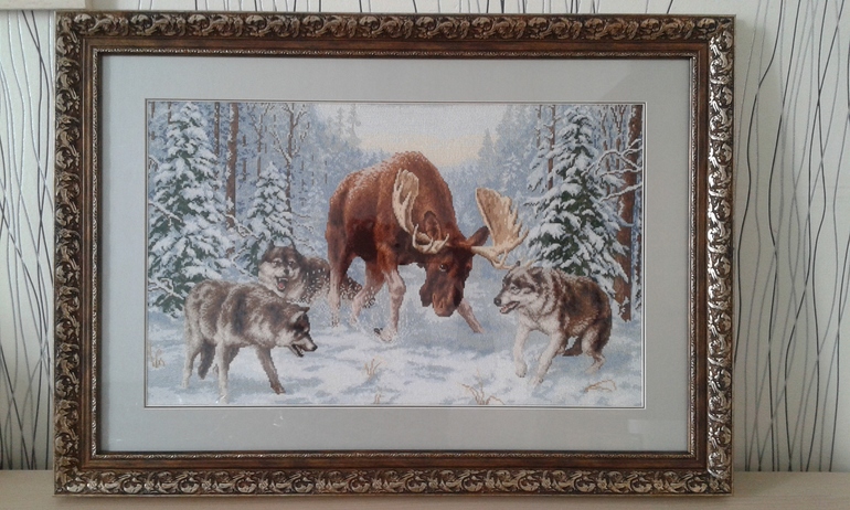 Вышивка крестомОформились мои зверюшки... Двойное паспарту..нижнее коричневое, верхнее серое. Ну и багет мне понравился такой, как бы слегка с патиной.. все удовольствие мне обошлось в 1557рублей)) Правда эти косячники, как обычно, отчудили..Сначала привезли готовую работу, на что женщина приемщица отдала им ее обратно, со словами: переделывайте, она(т.е я) ее не возьмет!
