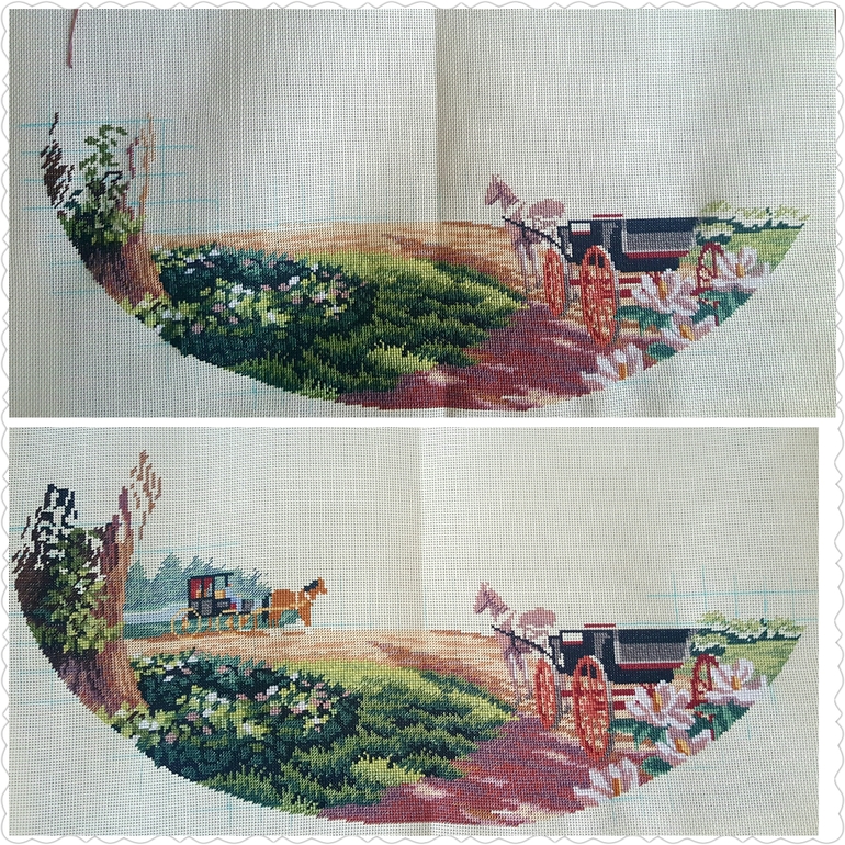 Всем привет! Вышивать удалось только один вечер, но немного продвинулась, вроде. Надеюсь, хотя бы через недельку времени на вышивку прибавится.