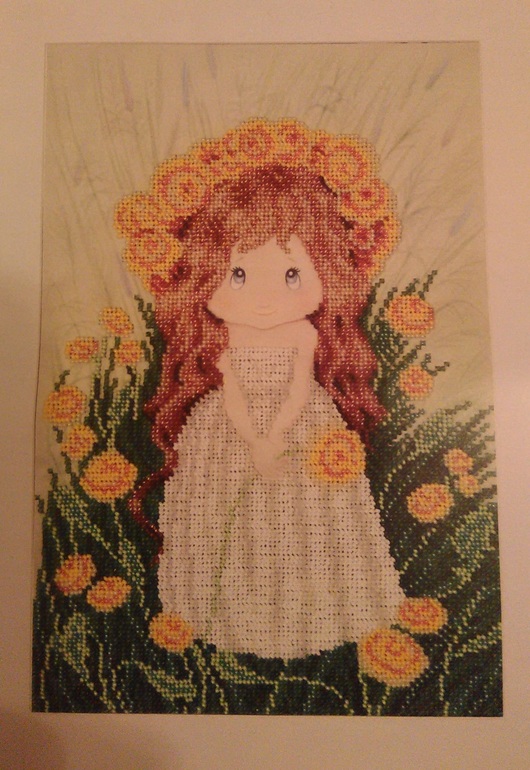 Девочки, доброй ночи.что-то у меня начало в привычку входить отчитываться в последние минуты, не нравится мне это, буду искоренять.а пока я закончила свою весеннюю бискорнюшку, сшить пока нету возможности, поэтому показываю как есть, еще только фрузелки остались на божьих коровках, но я их никогда не делала, буду учится. и начала вот такую девочку яркую бисером, но там пока показывать нечего)
