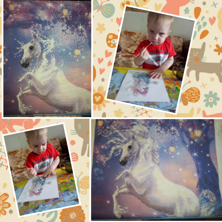 Мой младший тоже стоя рисует! У единорога грива красивая) и сам он бесподобный