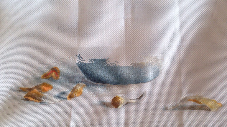 Вышиваю в удовольствие, но 10-15 минут в день, это очень мало, поэтому и результат не слишком впечатляющий. Зато стараюсь не пропускать ни дня!