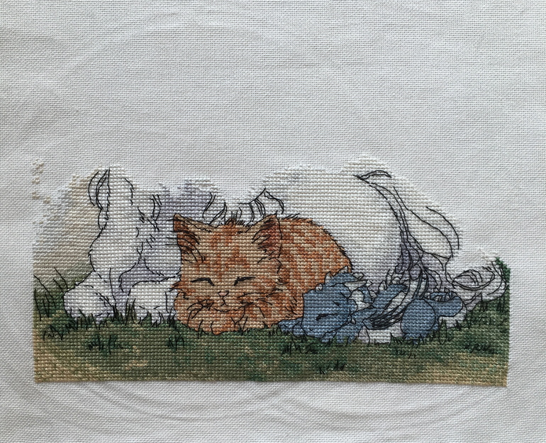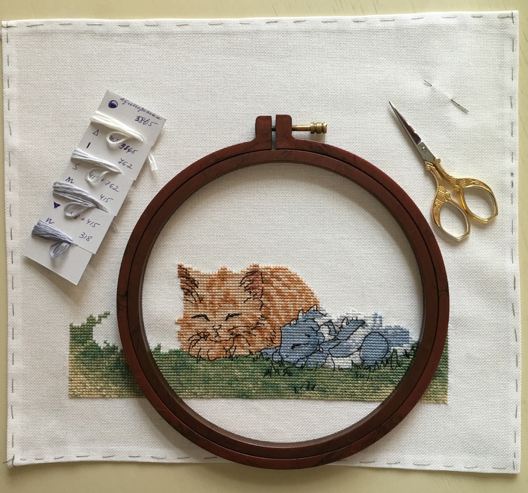 И снова здравствуйте! Я сегодня без снимка "до", потому что все, что вышито спрятано) Процесс очень нудный для меня( много зашивается одним цветом. Совершенно не моё, впредь буду тщательнее выбирать сюжеты, опираясь не только на "нравится-не нравится", но учитывая цветовую палитру и пр. прочее. Не бросаю, только благодаря хорошей компании