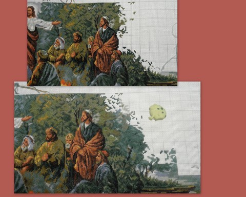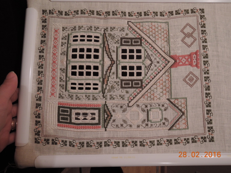 Привет, девочки. У меня вышито за неделю совсем немного, перескакиваю с одного угла на другой, как-то хаотично процесс идёт. Очень нравится орнамент вышивать, душу греет.