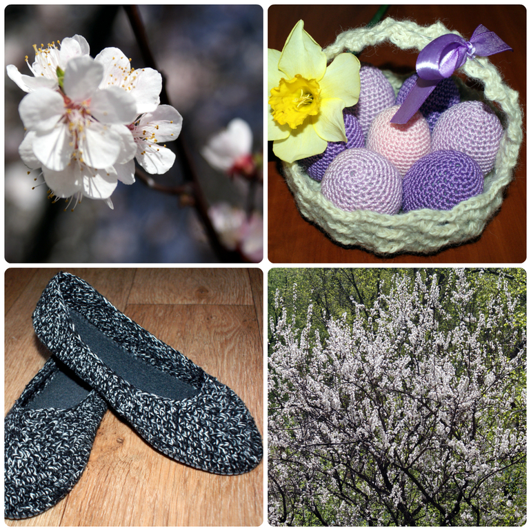 Всем привет! С вышивкой на этой неделе не сложилось - вязала тапочки и поделку Полине в школу. Ничего не успеваю, надо готовиться к дню рожденья, так что не уверена что получится повышивать. Зато у нас потеплело, всю неделю было солнышко и все расцвело и зазеленело. За неимением вышивки покажу немного других фото: