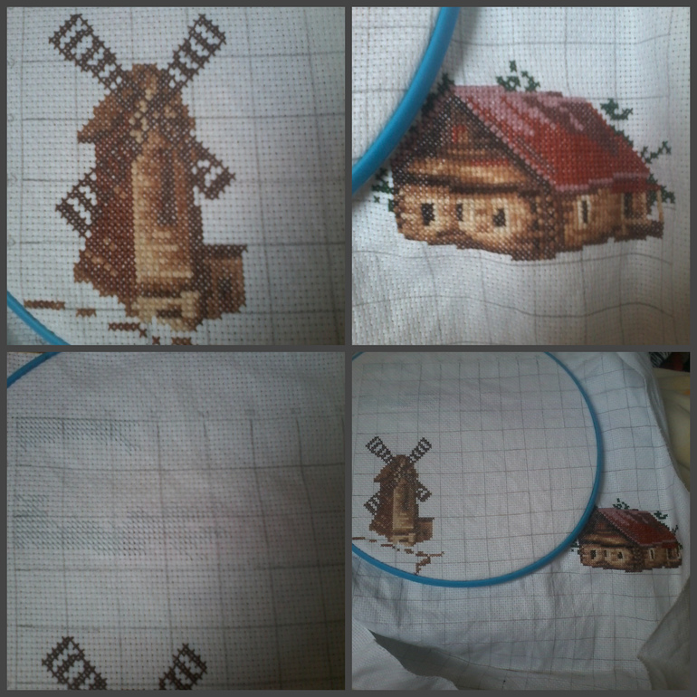 Всем привет. наверстывала все после пропущенной недели. Вышивать я изначально решила, не как у людей)) Сначала поставила домик, далее мельницу. И вот, когда основа есть - буду ее оформлять. Перешла к небу.