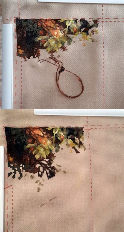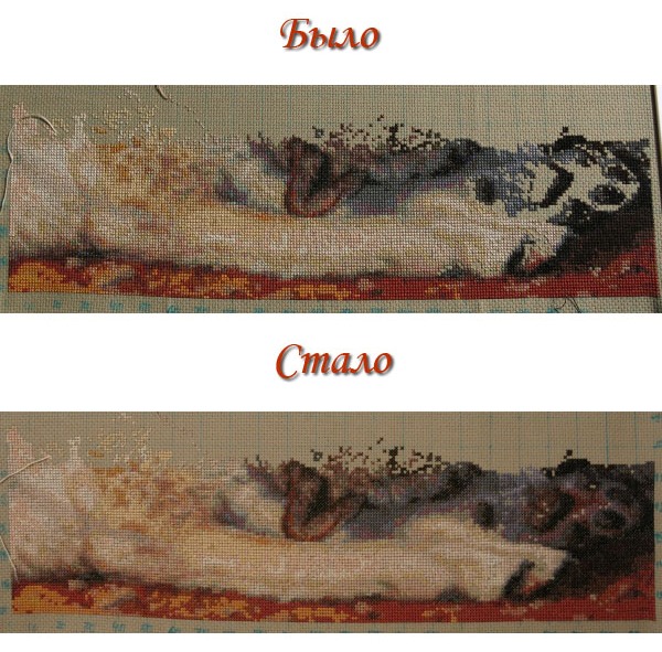 И шовчики...с ними вообще забавная история вышла..несколько отчетов я их усердно отшивала, а вчера вдруг решила, что эти сатиновые нитки меня уже достали конкретно-пушатся на раз-два!! ..и решила начать заново..с обычными ДМС)) Поэтому, необычный коллаж - было/стало