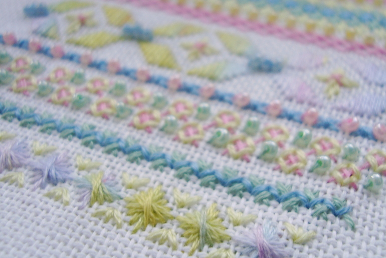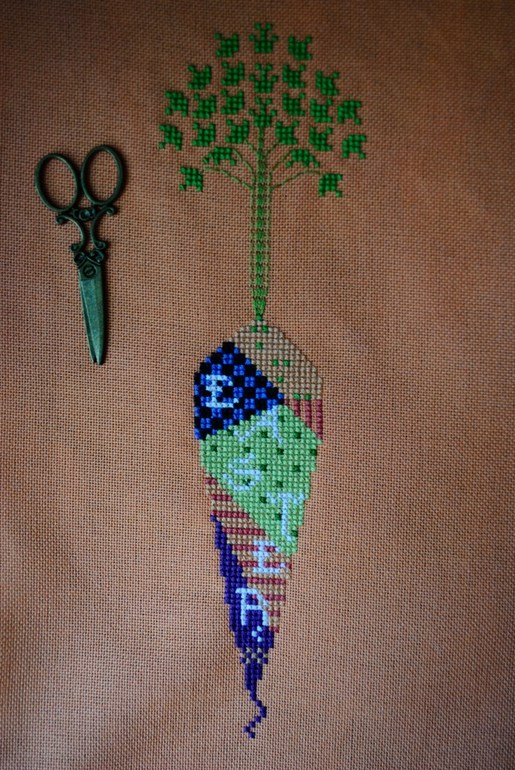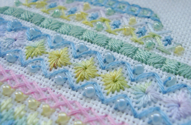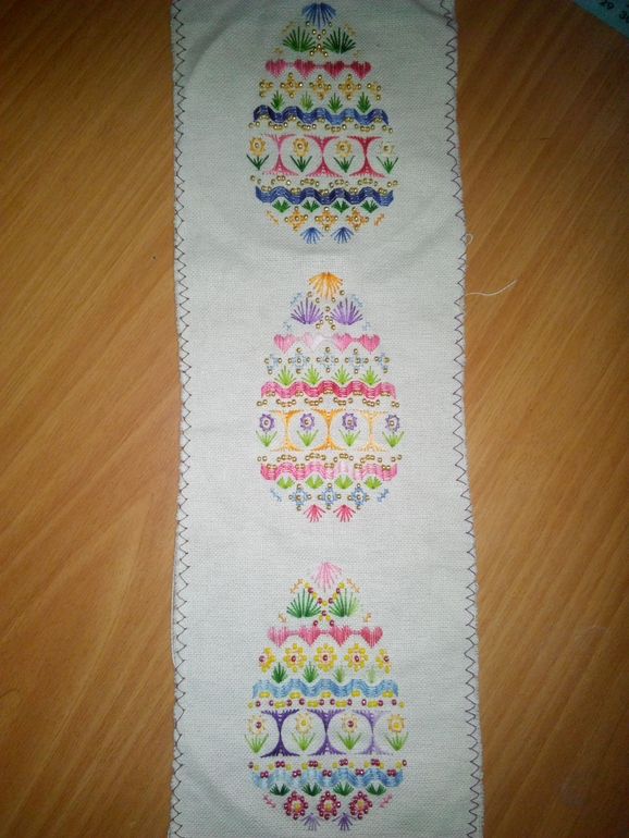 я вспомнила, что справа забыла вышить желтые полосочки, ну ничего, потом в готовом виде посмотрим :)