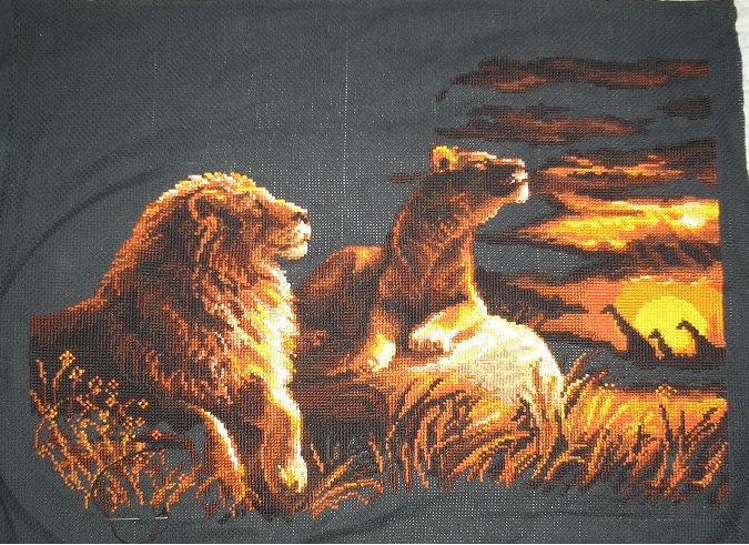 Хорошо так лев вырос! Красивая картина получается. А темным по черному это жесть, по "Искушению" помню)