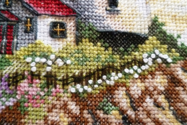 Ну и поближе фрагмент с французскими узелками и с ромашками (там где пугает бэк)