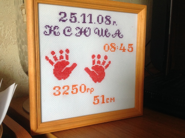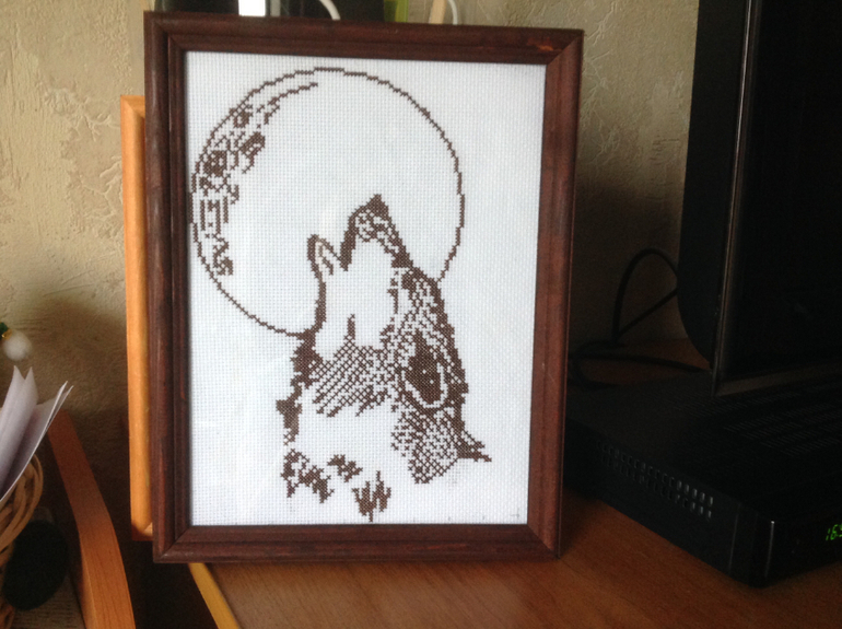 Вышивка крестомПрикупила сегодня самые обычные рамки и оформила. Метрика в подарок а Волк для себя!!! Так как багет не дёшево выходит спасаюсь такими рамками дёшево и сердито