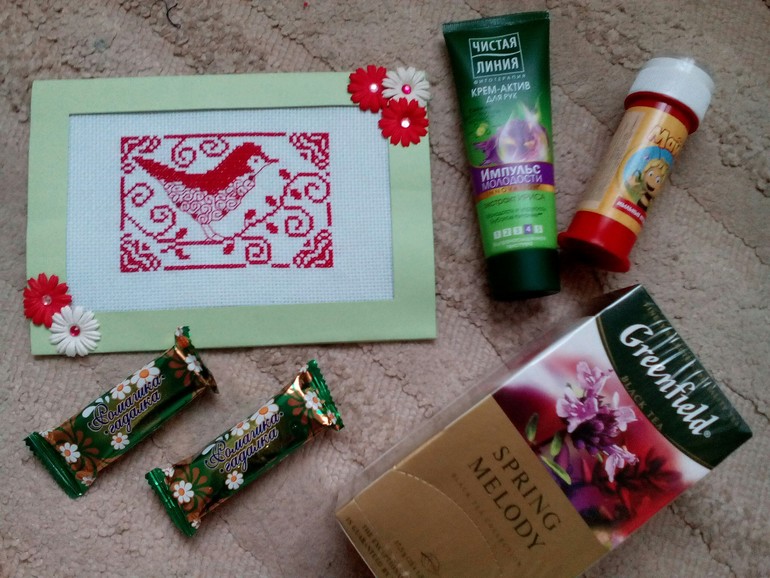Эх, неудачно я видимо посылку собрала никто отгадать не может ) я всю голову сломала что ж такого положить особенно на третье слово, хотела успеть что то сделать из пряди может было бы понятнее, но не успела (