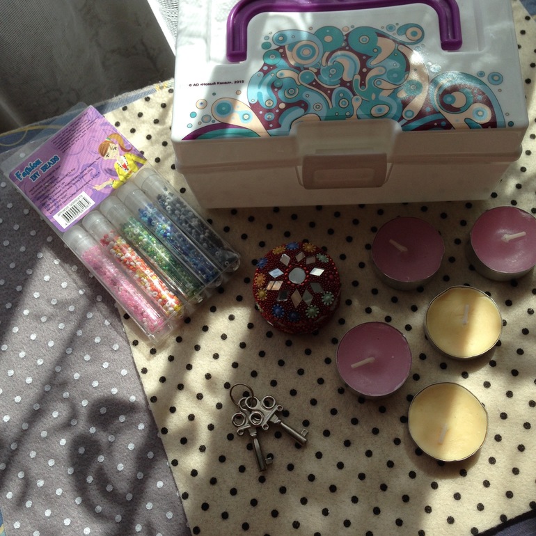 Фетр, бисер, шкатулка, ключики, свечи, которые ооооочень вкусно пахнут. Забыла сфотографировать тоник для лица!!!! Спасибо огромное!!!!! Чудесная посылочка!!!!! Феечка, отзовись)))!