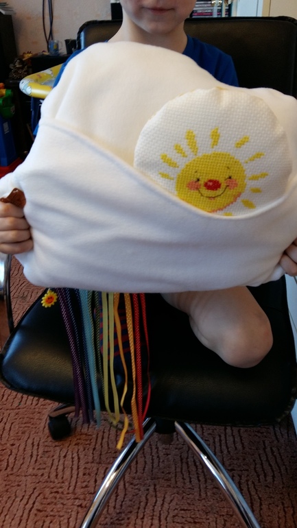 Отдельного внимания конечно заслуживает облачко с солнышком - подушка. Это красота! Я в восторге,она такая мягкая,такая интересная,моей фантазии еще учиться и учиться! Спасибо огромное,мне очень приятно!