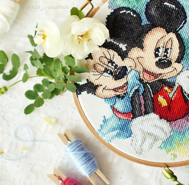 Как истинный любитель Микки, да и вообще диснея (особенно диснея моего детства,не современного), я не могла пройти мимо, и эта вышивка, рано или поздно, обязана была бы появится в моей коллекции работ.