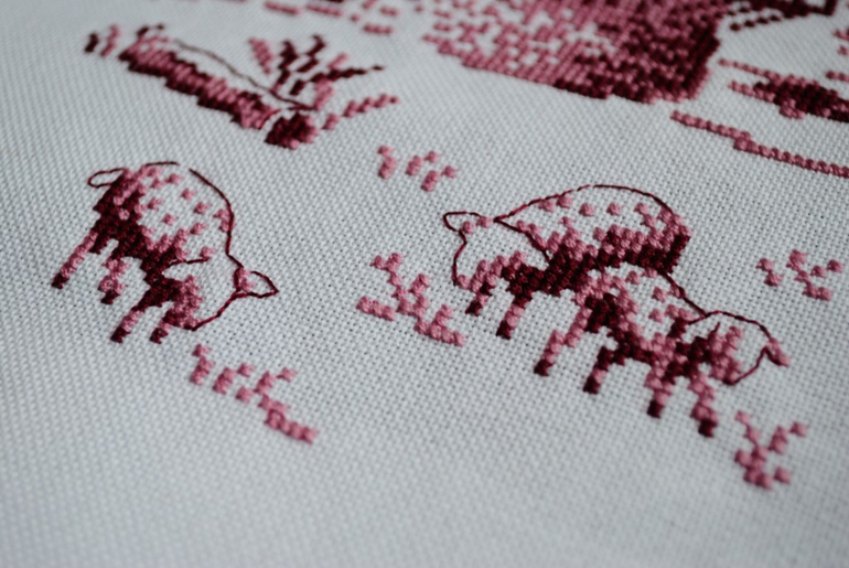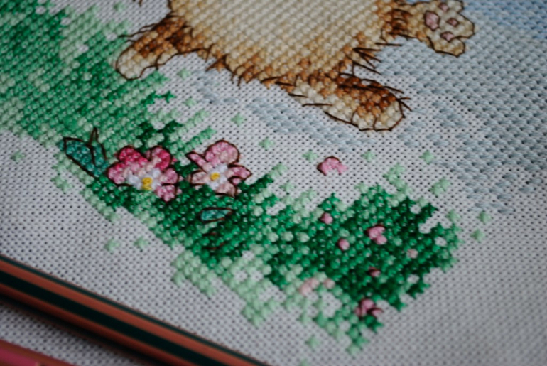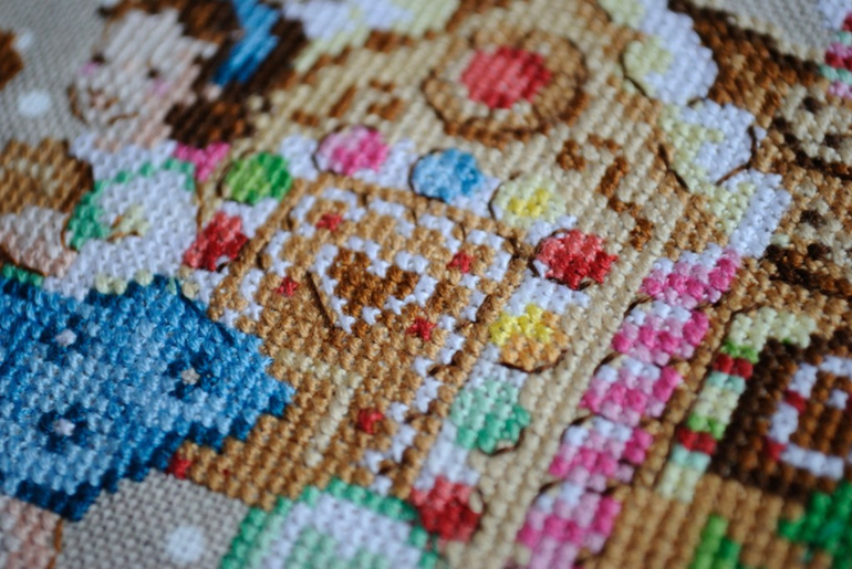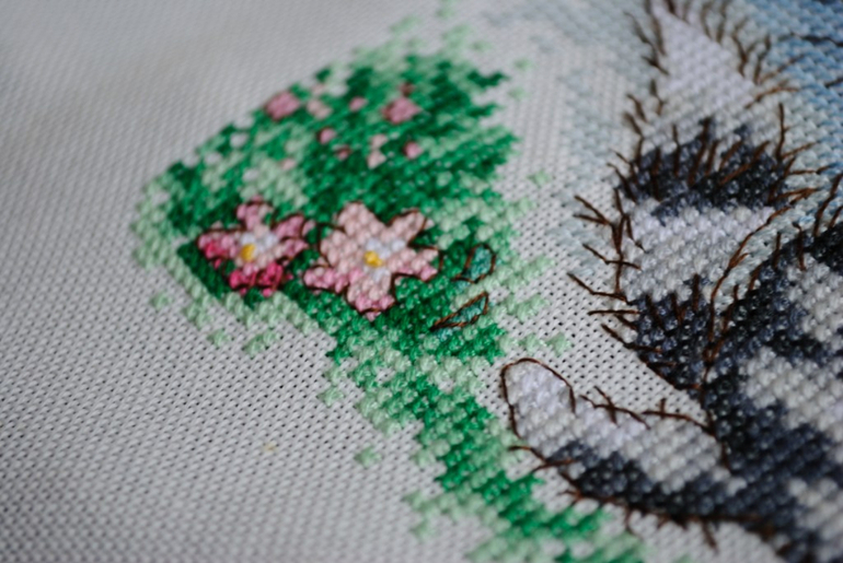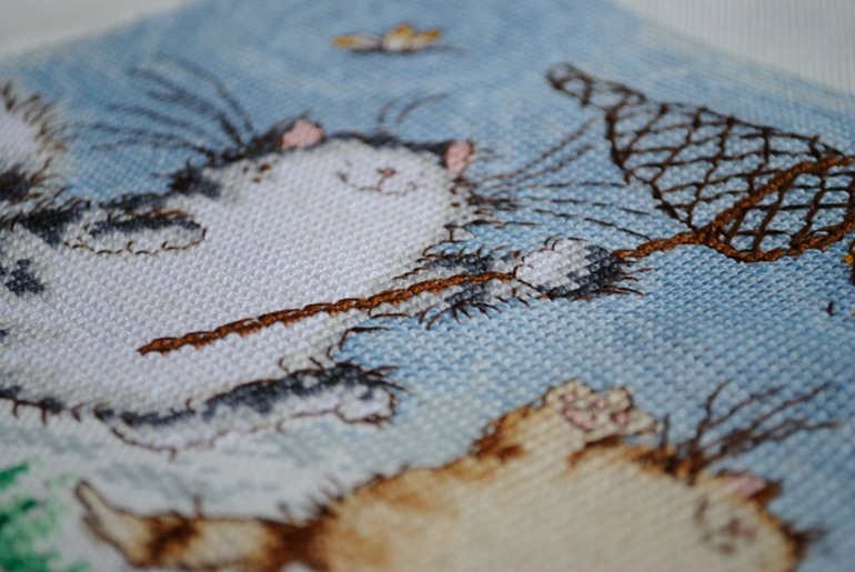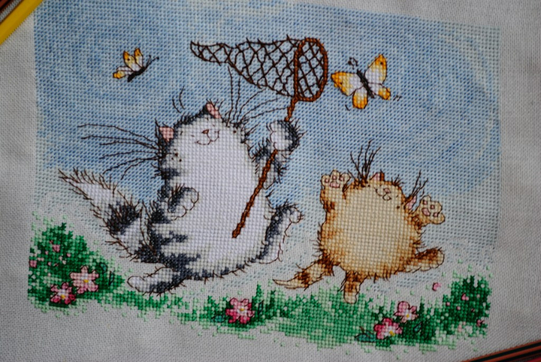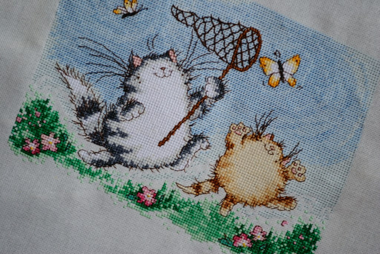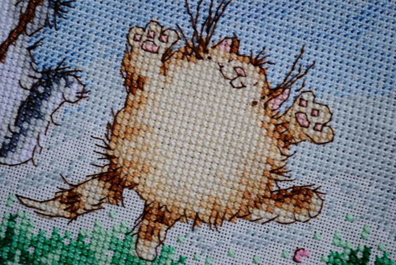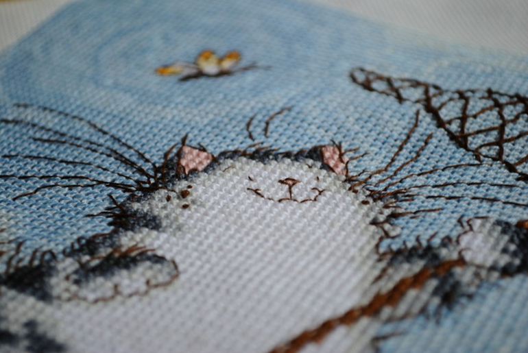 Вышивка крестомОчень мне понравилось небо в дизайне ниже, но когда вышила полностью, поняла, что безумно смущают ноги большого кота :)