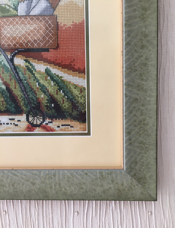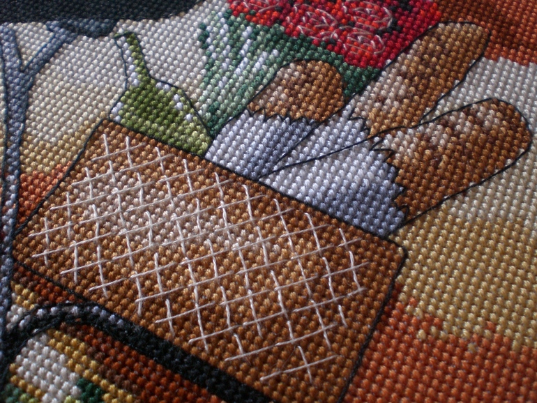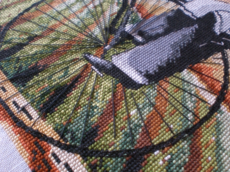 Переделывать уже конечно не буду , так как дарю , но послушала бы конструктивную критику по тому , как подходят или не подходят цвета к картине и что бы вы изменили ? Я если честно , впервые столкнулась , с тем как трудно угодить голубой канве ( которая идет как бы вместо неба ) .