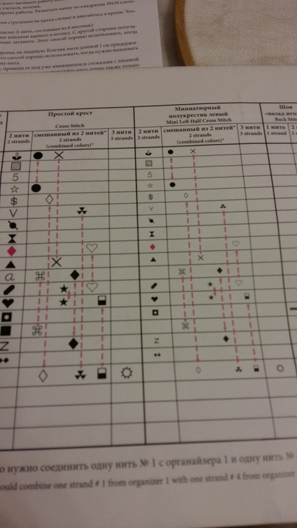 У меня в инструкции к Ромашковому полю от Анкор вот так это выглядит Но я смотрю на вашу схему и вижу что в одной клеточке аж 4 символа кое где. Значит у вас ,,это не крестики, а полукрестики! Второго стежка нет! Так и будут рядом с большим крестиком маленькие наклонные стежки через одну ниточку ткани. В две нити как раз нормально будет, ведь второго стежка нет. Эти миниатюрные полукрестики делают линии вышивки плавными, не угловатыми, как из больших крестиков,, - это я по поиску нашла