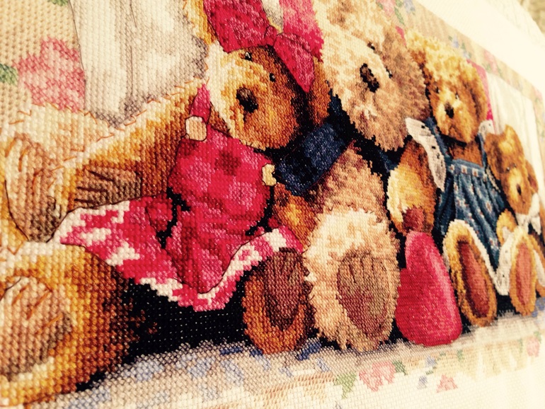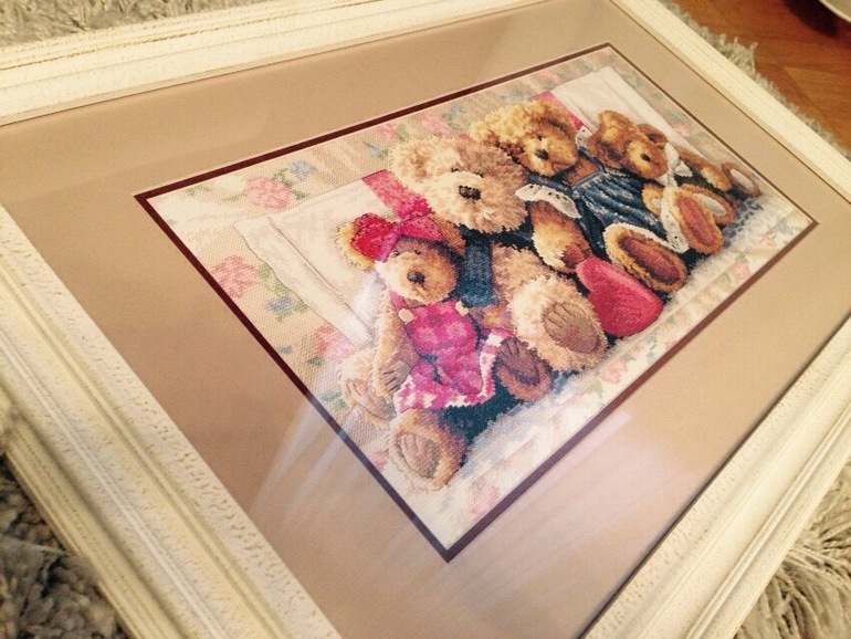 Вышивка крестомНу и последний, заключительный пост на сегодня - A Row of Love от Dimensions. Это наверное самая вышиваемая картина с мишками, да и я не смогла пройти мимо этих очаровательных медвежат. Оформлено как и все мои картины в светлый багет, вышивалось легко, вышивка заняла около трёх месяцев. Прошу под кат:
