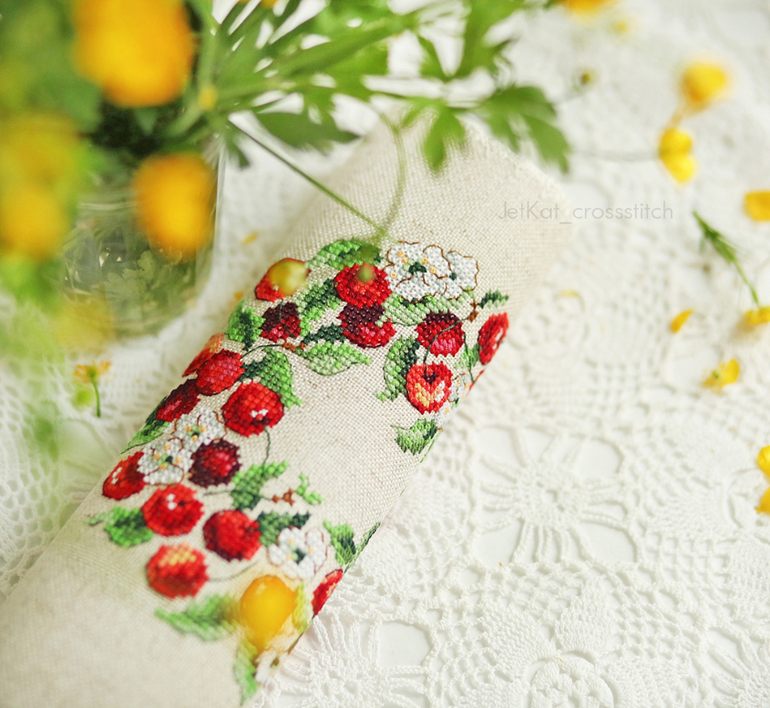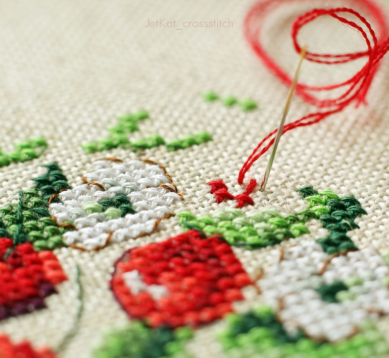 Ну а дальше вишенки начали прибывать. Хочу сказать, что при кажущейся не богатой палитре, в основном зеленые и красные цвета, они совершенно не надоедают, вышивать сплошной кайф!