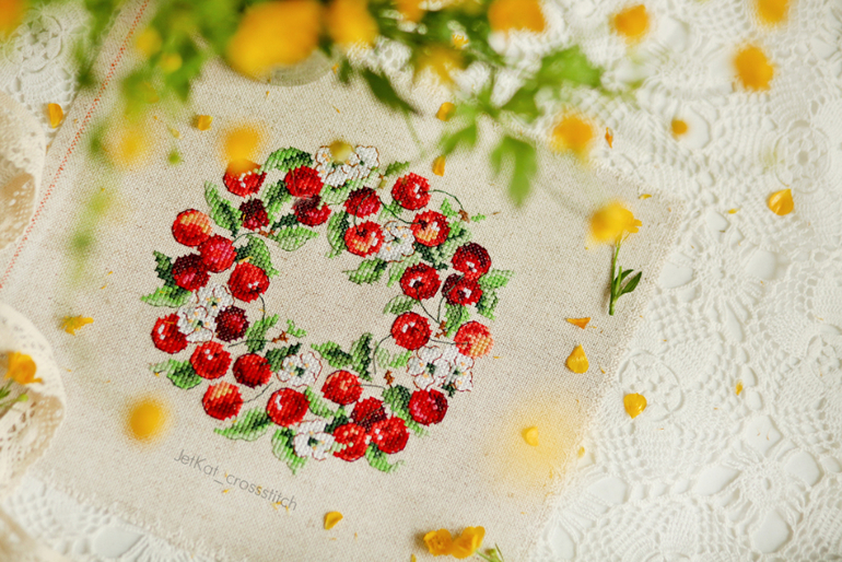 Вышивка крестомПервый французский дизайн, в который влюбилась по уши очень давно. Но как-то все остальные планы его опережали, а тут, в очередной раз, увидев в инстаграме еще один отшитый веночек, я подумала: все! хватит просто так мечтать, надо брать и делать!)