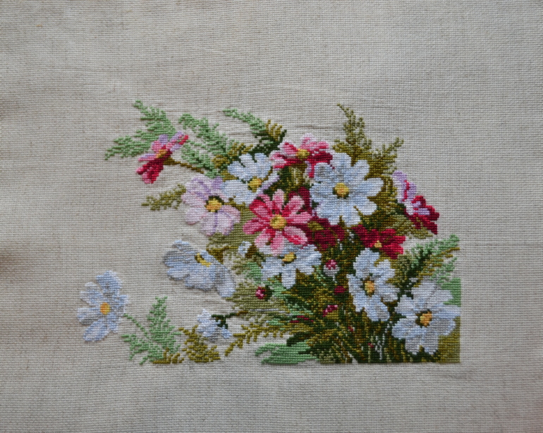 Хочу показать вам еще одну свою вышивальную работу. Это космеи от фирмы Риолис.