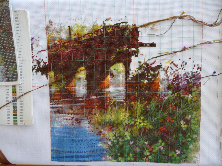 Всем привет. Задержалась с отчетом. Но у меня ситуация -"что такое не везет и как с этим бороться?" Умудрилась заболеть, 5 дней провалялась с высокой тем-рой (спасибо кондиционеру) и только сегодня смогла чуток повышивать. А еще сегодня получила с АлиЭкспресс ниточки для других вышивок, но держу себя в руках и пытаюсь закончить эту. Хотя надо будет отвлечься на метрику в подарок, скоро племяшка родится!!!