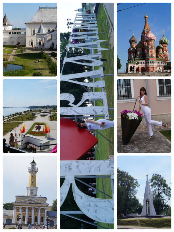 Я наконец-то научилась делать коллажи)))) Первое утро своего путешествия мы встретили в Москве, потом побывали в Ростове Великом (думаю все узнали места где проходили съемки Ивана Васильевича), посетили Ярославль (это та самая всем известная по 1000 купюре часовня), каланча Костромы действующая до недавних времен и конечно же Владимир)))) Много еще было мест и фотографий, но решила выбрать наиболее известные места)))