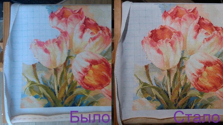 Всем привет! Я ввиду нашего небольшого путешествия до сегодняшнего дня за вышивку вообще не садилась... Уже думала эту неделю прогульщицей объявиться, а потом как села за станок, так и не могла весь день от него оторваться, пока тюльпан не дошила (и кажется, даже на соседний немного уже замахнулась))). Вот что вышло. Около 800 крестиков за день. А еще у меня неожиданно закончился один цвет (хотя других остается лишнего много). Хорошо, что у меня есть живая карта Гаммы - подобрала. Да еще и в наличии у меня этот цвет оказался. Сплошная вышивальная пруха в общем сегодня у меня вышла)))