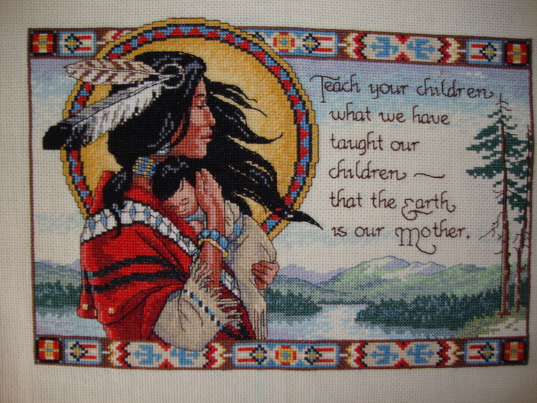 Вышивка крестомДоброго времени суток! Меня зовут Наталья, недавно закончила свою первую полноценную работу по набору "Дименшенс", хочу показать. Первая полноценная потому что до этого был только мини-голдик Дим и метрика. Набор американской сборки, редкий и не особо популярный, но меня он чем-то очень зацепил. Надпись переводится как: "Научите своих детей тому, чему мы научили своих: что Земля - наша Мать"