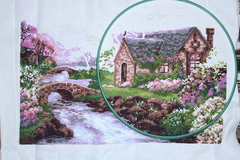 Вышивать буду, вернее продолжаю вышивать то что не закончила в ВД8, Загородный пейзаж, Весна от Риолис. как же мне надоела шерсть