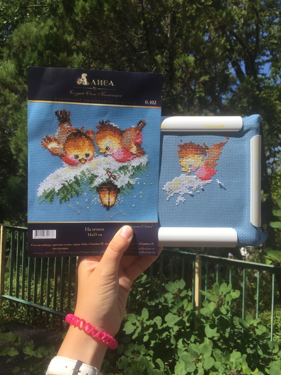 Всем привет! Меня зовут Наташа. Очень рада поучаствовать в ВД! Вышивать начала 10 лет назад когда маме на работе подарили несколько наборов от Сотвори Сама и РТО. Потом был большой перерыв. А сейчас не могу остановится. У меня большая семья - муж, сынок 7 лет, старшенькая дочька 5 лет и младшенькая полгодика. Сейчас отдыхаем на море, с собой взяла небольшой набор от Алисы "На огонёк".