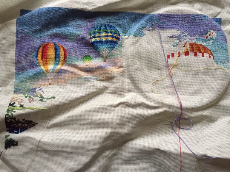 В эти выходные не хотелось на улицу совсем и немного продвинулась моя работа "парад шаров". Осенью точно закончу :)