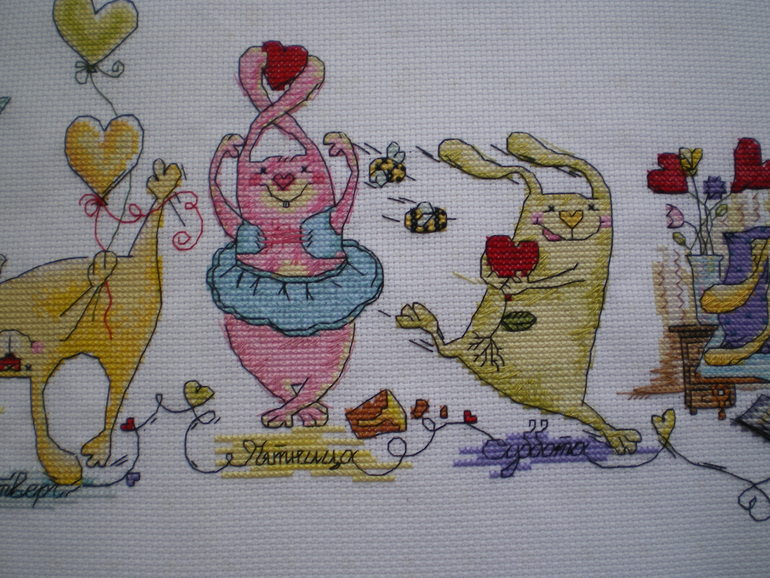 Как здорово вышло. Я тоже вышивала с большим удовольствием. Только вот до сих пор не оформила, не придумала - как. Так и лежат, зайчишки