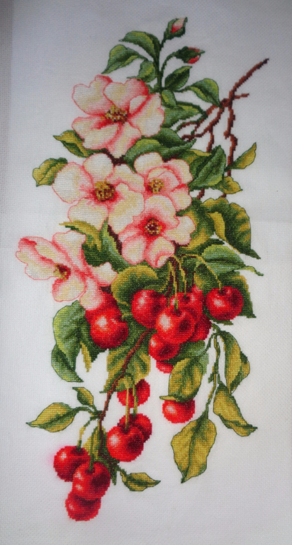 Вышивка крестомЗакончила я вишенки от Лука-с. процесс занял 5 недель. В принципе, все просто и легко, только крест, нет блендов, полукрестов, цветов - 32.