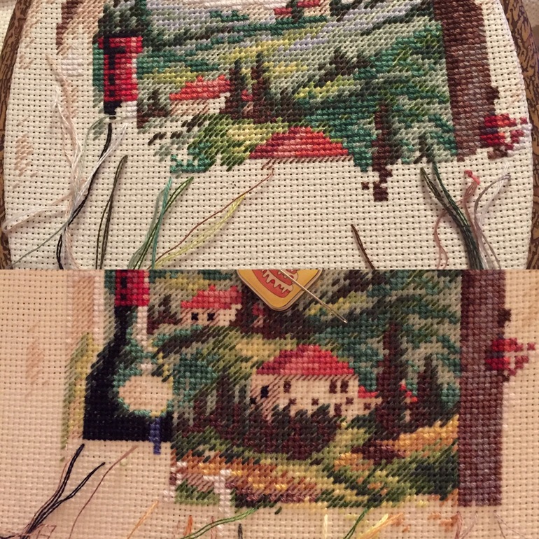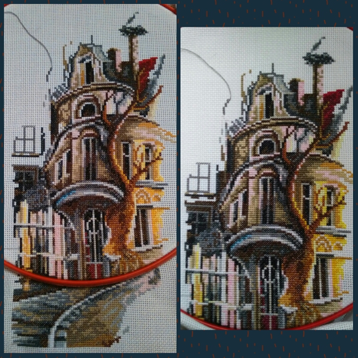 Всем привет! Только вернулись из отпуска, гостили у родственников в Туапсе. Как-то не удавалось мне полноценно повышивать за неделю. Но теперь я дома и обещаю исправится:) Когда сдела колаж, сама еле нашла отличия, но прогресс был, верьте на слово, если не найдете:)))