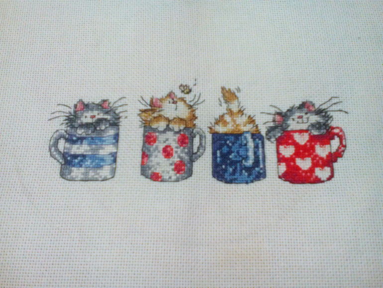 Веселое чаепитие, копия моих котейков,подбор ниточек свой из своих запасов и схема из инета
