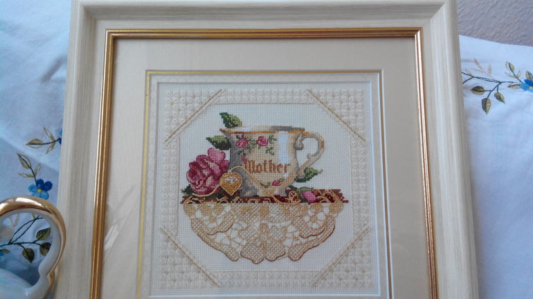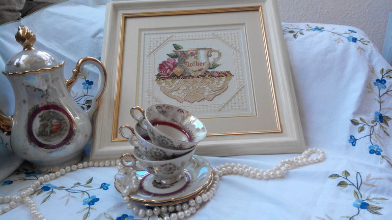 Вышивка крестомТеперь в моем исполнении. Сколько их, этих чашечек отшитых на просторах инета.... Теперь и моя добавилась. Что тут сказать- прекрасный набор, прекрасный сюжет, прекрасный дизайн. Долго я не решалась его отшить. Но вот пришло и мое время. И моя мама теперь тоже с чашкой.