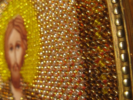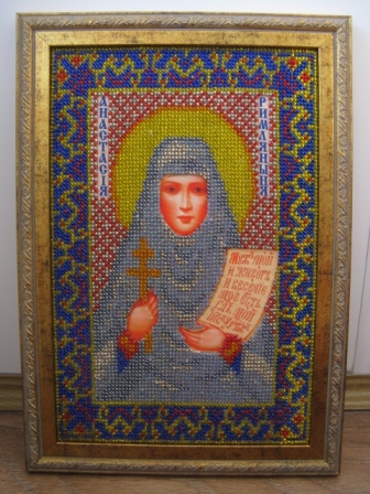 Вышивка бисеромВышились у меня за лето 2 иконки именные и две были уже 2 отшитые. Одну из них "Елена" оформила сама в рамку, так как нужно было срочно подарить и времени отдать в багетку не было.