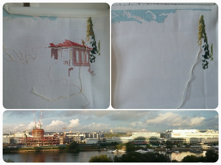 пишу с телефона..поэтому кратко. вышивала только круг.. и то мовсем немножко... что было не могу показать..но сейчас вот так..появился недоделанный мостик и справа дошит кусок реки)))