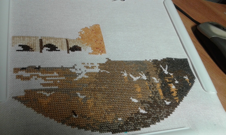 Пока лучше вышивается перед телевизором, хоть и реально планировалось там )))