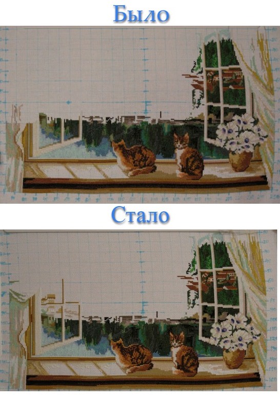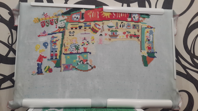Всем привет! Неделя выдалась ужасная, отучала младшего от ГВ, думала будет легче, но Пашка решил иначе. Вроде и молока то совсем не было, и по ночам он не ел, пил только воду. Но кричал всю неделю, так ему было обидно. Просыпался в 4 - 5 утра и засыпал около 3. Так что я совсем и не вышивала, может на этой неделе хоть закончу, там остался только полукрест.