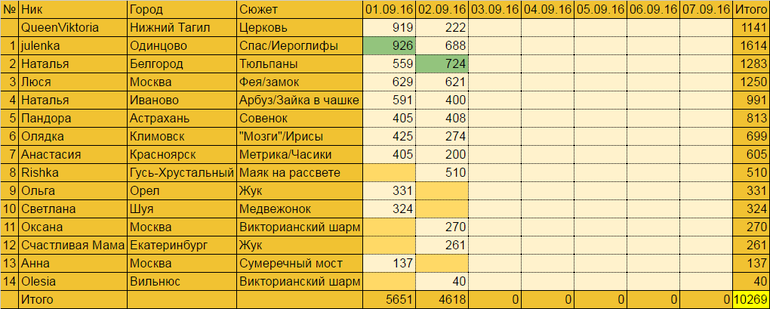 Сегодня сменился лидер дня. Им стала Наталья со своими тюльпанами от Алисы (724 крестика). Лидер в общем зачете по прежнему Юленька (1614 крестиков)