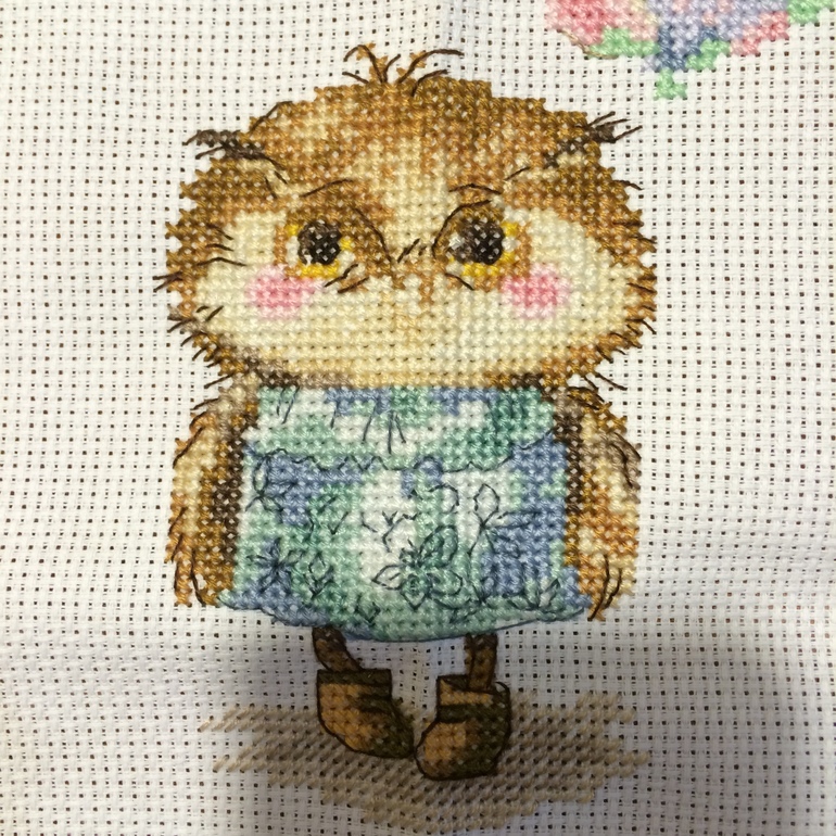 Всем привет! Я в числе последних сегодня. Простите. У младшей дочери оказалась не банальная простуда, как мне говорила одна врач, а бронхит, причем уже запущенный (слава Богу хватило ума пойти у другому врачу). В общем всю неделю на руках, плюс зубы полезли. Вышивала я всего пару часов. Постараюсь на этой недели вышивать больше. ну и мои 2,5 крестика.