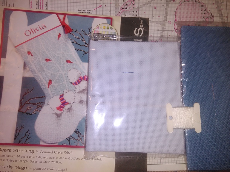 Есть вопрос!Девочки, я сейчас искала набор дименшенс новогодний сапожок для совместника. Так вот схему и нитки отыскала, а канвы в пакете нет((( а ведь там прилично вышито было! Я все перерыла, как будто испарилась. Я поискала и нашла у себя 2 кусочка канвы Аида светло голубая 16 каунта и Аида синяя 14 каунта. Какая больше подойдет? Или может купить 3 вариант или вообще равномерке более подходящего цвета найти?