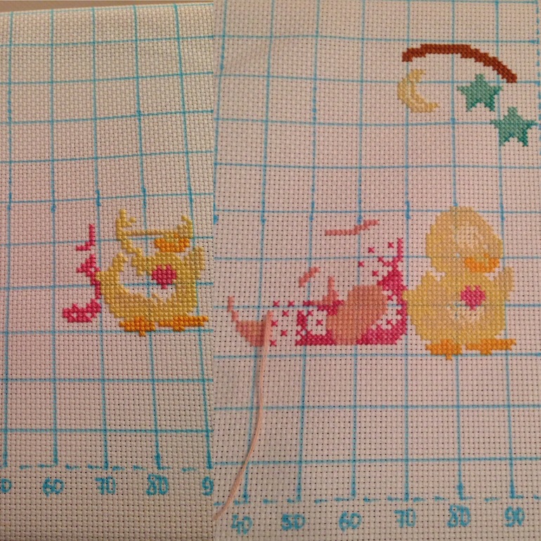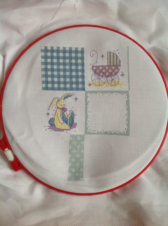 у подруги уже 31 неделя, поэтому я решила ускориться, мне еще шить органайзер на кроватку, туда же и метрика пойдет.