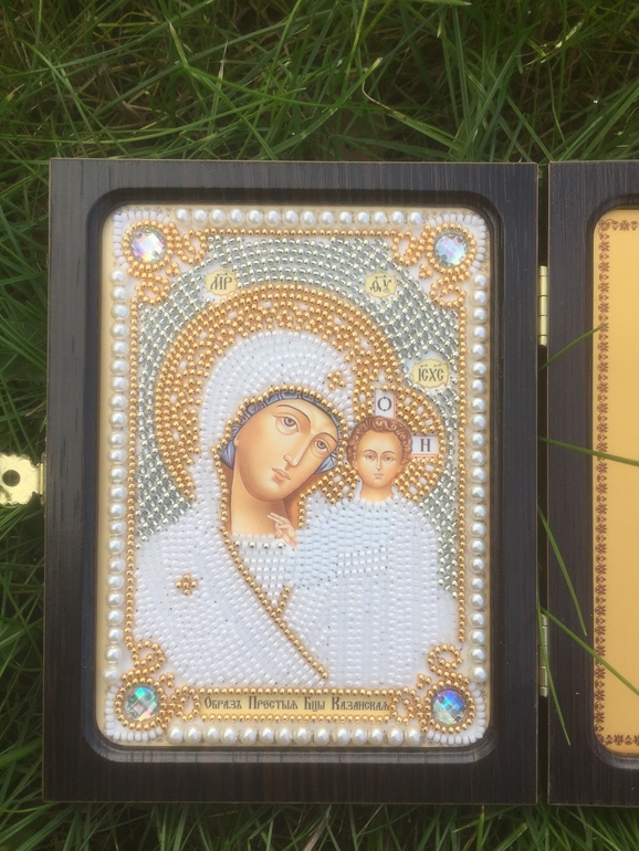 Меня тоже никогда не впечатляли иконы бисером. Чаще встречались вышитые кривым китайским бисером. Но однажды увидела в багетке икону ювелирным бисером, очень понравилось. Вышила пока только родителям, хочется себе в будущем.